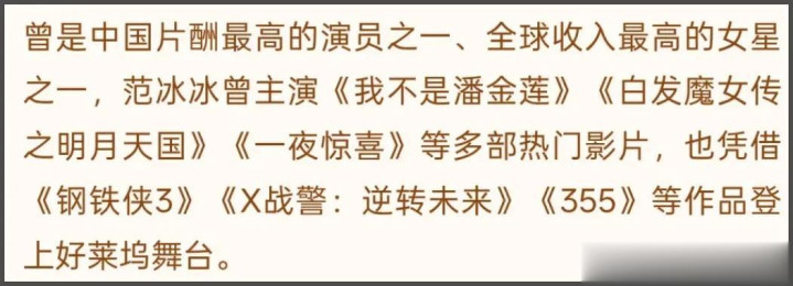 范冰冰也是这其中一员,拿着高片酬享受着观众的支持,连这次采访,外媒介绍范冰冰,也说她曾是中国片酬最高、全球收入最高的明星之一。但一朝落寞就在外网贬低中国观众审美,拍了那么中国电影,赚了那么多钱,现在回过头来说中国电影不行?