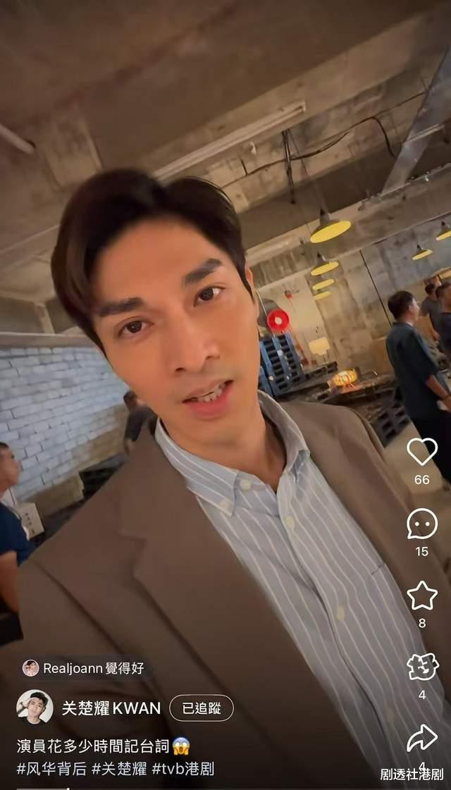 在视频中,关楚耀还不忘自嘲“加油呀加油呀,我记熟今天的对白了”,虽然台词只有一个字,关楚耀还是很认真在对待拍戏的。