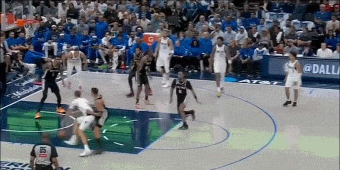 当文班被拉到外线时,会有另外的球员过来补防,而文班会尽可能的赶上完成封盖