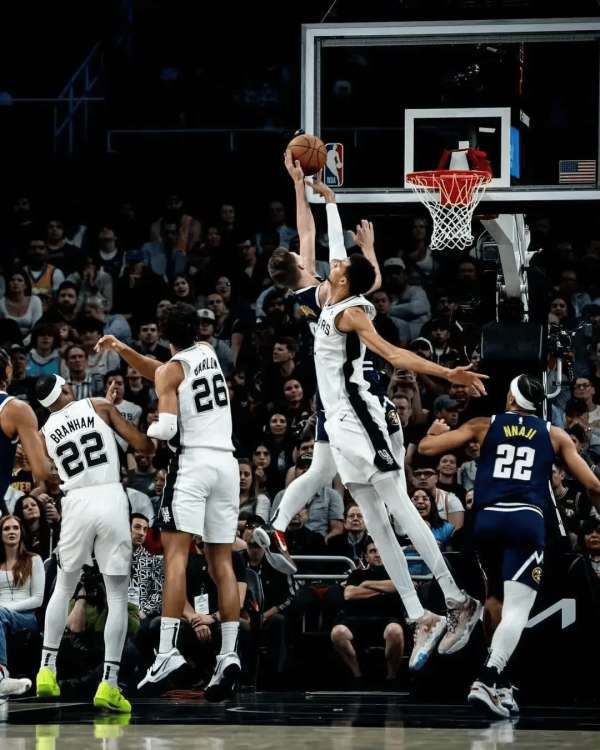 马刺的防守体系建立不光是靠文班亚马的内线护框,更重要的是锋线和后卫在外线施压,让文班可以减少机会面对小个子持球人,形成错位机会,并且有时候会利用文班的防守优势故意让进攻球员往内线突破,在内线被防住。